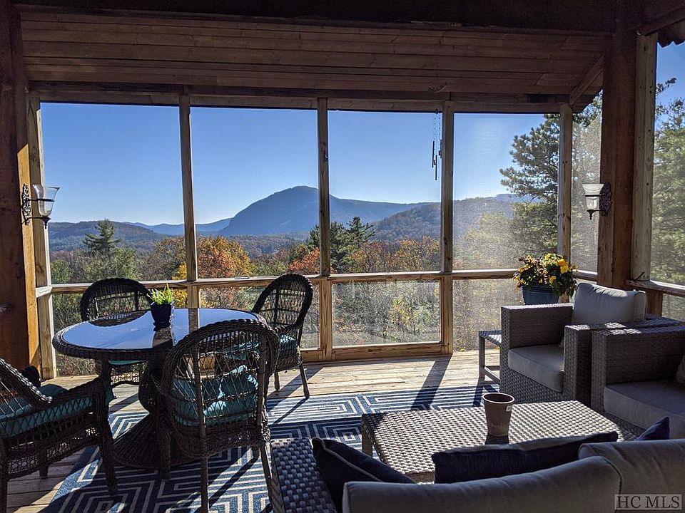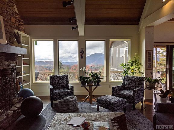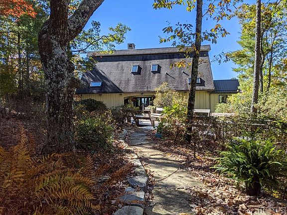 Tim Green designed one bedroom+loft rustic updated home & 2 bedroom guest house with soaring views of Whiteside Mountain. 5 +/- acres includes lot 14, adjacent to community pond & meadow common areas. Main house is open & bright on one floor with an amazing new kitchen with white cabinets/granite/stainless appliances, new laundry room and breakfast bar. The main house has 2 tall stone Fireplaces(MBR,GR) Master suite has a stone fireplace with tall cathedral wood ceilings,exposed beams & wood floors, Screened porch and deck have huge views of Cashiers Valley and Whiteside Mountain. What more could you ask for? Guesthouse is 2BR/2BA's, coffee bar & deck. Gated. Terraced gardens below house on view side with good exposure.. A nice wooden walkway connects the 2 houses. Very quiet and private. Pond perfect for trout fishing. Community picnic pavilion at the top of Big Sheepcliff Mountain for parties. Gated. Cul de sac location.