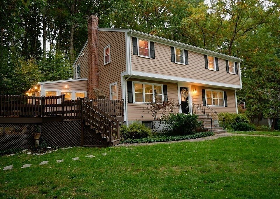 Set back on a private and lush lot, this beautiful 5 bed, 2.5 bath center entrance colonial offers everything for today's lifestyle. Flexible first floor boasts an updated kitchen with stainless steel appliances, a formal living room with wood burning fireplace, and French doors that lead to the light and bright sun room. An expansive rear deck overlooks the spacious yard and fire pit, perfect for entertaining or play. A generous dining area, just off the family room, provides an easy flow for holiday hosting and family gatherings. The second floor offers a full bath with 4 bedrooms as well as a primary bedroom with en suite bath. Finished lower level is perfect for playroom, gym, or home office. Additional amenities include direct access to the two-car garage, first floor laundry, hardwood flooring and Central Air. Convenient to downtown Medfield with close proximity to the highly sought-after schools. This is the perfect home to enjoy both privacy and everything Medfield has to offer