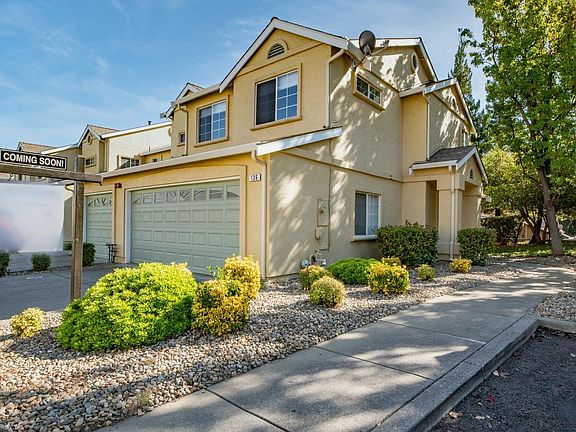 Welcome to this beautifully well-maintained two-story condo offering 3 bedrooms, 2.5 bathrooms, and approximately 1,300 sq. ft. of comfortable living space. The inviting main level features a spacious family room, dining area, and a bright kitchen with tile countertops, oak cabinets, and plenty of cabinet space. A convenient half bath is located downstairs for guests. Upstairs, you'll find three bedrooms, including a generous primary suite complete with a walk-in closet and an ensuite bath with dual sinks. The home features a combination of carpet and laminate flooring throughout. Additional highlights include a freshly painted, fully finished garage and a private quaint patio backyard, mature trees perfect for relaxing or entertaining. Conveniently located close to shopping, parks, freeway access, and Travis Air Force Base.