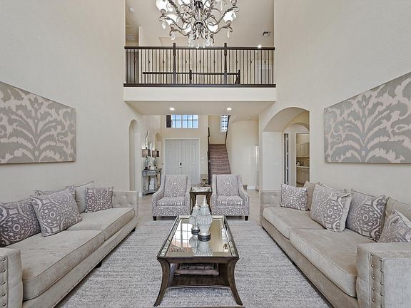 Experience breathtaking views in this highly sought-after and rarely available Stonegate Model. With six spacious bedrooms and elegant living areas filled with natural light, this home is designed for both comfort and sophistication. Dramatic 25-foot floor-to-ceiling windows create a grand ambiance, while generous living and workspaces provide an exceptional lifestyle.The first-floor primary suite is a true retreat, featuring private access to the pool patio, two walk-in closets, a jetted whirlpool tub, and separate vanities. Two additional main-level bedrooms offer custom plantation shutters and are complemented by two full bathrooms, providing convenience and privacy. Upstairs, a spacious loft awaits, perfect for entertainment, work, or quiet relaxation, along with three additional bedrooms and two full bathrooms.