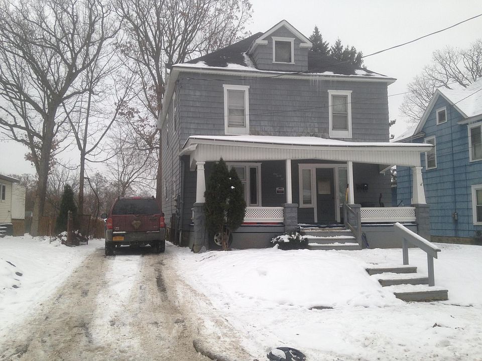 This is an awesome 2 Bedroom 1st floor apartment with new paint throughout and closets in all rooms. Off street parking. This is a very nice unit with Living Room, Large kitchen with Appliances and lots of room for a kitchen table. Bathroom is redone and has a tub with shower. There are washer/dryer hookups in the basement. There is also a huge fenced back yard for your BBQ, Large covered rear deck and nice front porch for those hot summer nights. Sorry....NO PETS in this unit. Month to month rental agreement. Application available when you see the apartment. Your past 5 years worth of rental history AND landlord contact information is required. Tenant pays all utilities; electric, gas, water,sewer and trash.