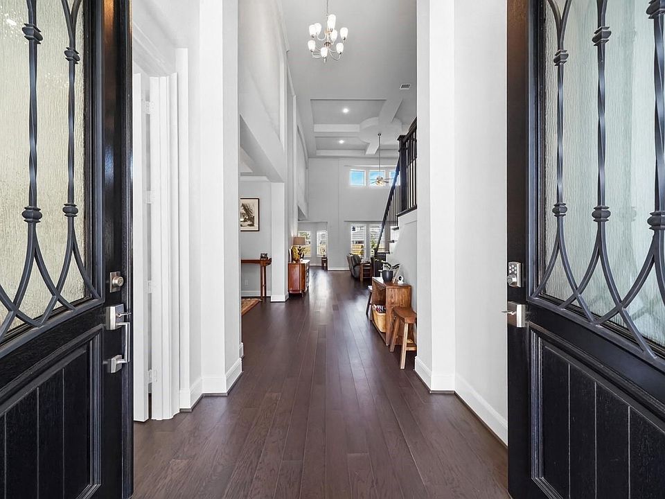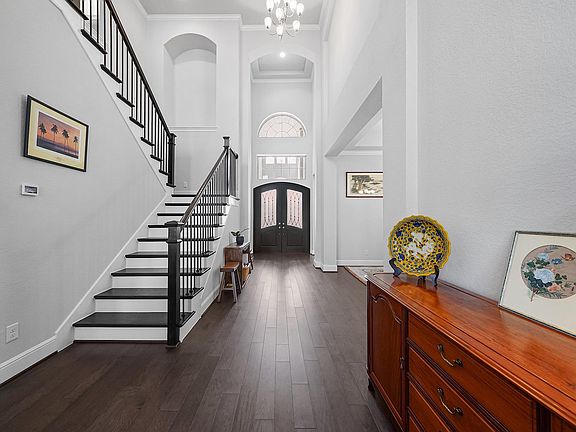 This stunning 2-story home in desirable Smooth Stream offers 2 bedrooms down! Featuring double front doors, soaring ceilings, wood floors, custom shutters, & an open floor plan, this lightly lived-in beauty exudes elegance. A French-doored study, formal dining room w/ tray ceiling,& butler’s pantry. The chef’s kitchen boasts ample cabinets, SS appliances, granite counters, gas cooktop, island, bar seating, & breakfast nook. The spacious family room is highlighted by a curved wall of windows, a stone fireplace + two-story ceiling. Primary suite includes cozy sitting area, walk-in shower, dual vanities, & his/her closets w/ built-ins. Upstairs, find 2 large bedrooms, a game room, & state of the art media room. Garage w/epoxy floors, storage units, & EV charger, utility w/sink, custom cabinets in MUD room. Outdoors, enjoy covered patio + kitchen w/ grill, sink, & fridge. Additional perks include a whole-home generator, water filtration system + much more-must see feature list!