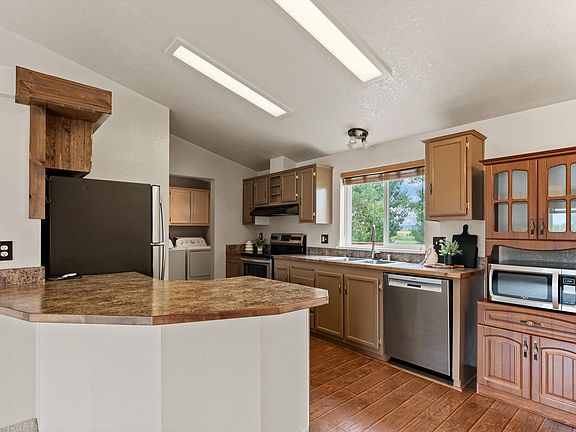 Country charmer north of Kalispell. Located on a generous 1.13-acre lot, this tidy two-story home is surrounded by a beautifully landscaped yard and includes terrific mountain and valley views. Inside are three bedrooms (two of them adjoining) and two bathrooms, plus a full basement with expansive living space and two additional office/hobby rooms. There are three RV electrical hookups in the yard for family gatherings, a large garden shed, and a fantastic 32 x 32 insulated shop/garage to top it off.