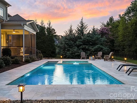 Experience rustic modern in this beautifully renovated home within the gated section of The Point, Sconset Village, with a boat slip at Pier Z! Move-in ready and infused with timeless character, this home blends open, light-filled living with curated design details throughout. The open concept layout captures the natural light and is complemented by a formal dining room with a coffered ceiling and a private office with French doors. In the soaring great room and kitchen, hand-textured stone adds warmth and depth, while new quartz countertops, Thermador appliances, and a custom vent hood create an elevated, inviting atmosphere. The main level primary suite, with dual closets, offers a serene retreat. Upstairs, three additional bedrooms, two full baths, and a new bonus/media room with theater-style features provide versatile living and entertaining space. Outdoor living is unmatched with a screened-in porch, a newly added heated saltwater pool and spa, and a travertine patio surrounded by fresh landscaping. Additional upgrades include brand-new hardwood flooring, designer light fixtures, quartz countertops in all bathrooms, custom window treatments, a whole-house water filtration system, and a new HVAC unit. Enjoy the best of golf, tennis, dining & fitness nearby at Trump National Golf Club Charlotte. This property delivers the perfect balance of luxury, timeless character, and Lake Norman lifestyle.