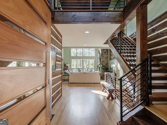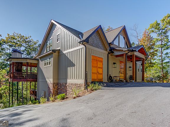 Nestled at the end of a cul-de-sac on a serene street sits the ultimate mountain lover's dream - 136 Unicoi Hills Trail. This custom built, move-in ready sanctuary features 4 bedrooms, 5.5 bathrooms, with panoramic mountain views and is situated on 1.2 acres. The main level features a unique and custom pivot door that invites you into the living room boasting a 35-foot vaulted ceiling, floor to ceiling windows, floor to ceiling stone fireplace, and solid oak flooring throughout. The open concept, eat-in chef's kitchen/dining area features an oversized Princess white quartzite island, dry bar with a built-in wine fridge, custom cabinetry, stainless steel appliances, and a custom walk-in pantry. The primary suite is also situated on the main level and features a spa like bathroom with honed porcelain tiles, a separate water closet, double-sized trough sink with a custom vanity, soaking tub, separate shower, custom closet and a private covered deck. There are also a half bath, laundry room, and small garage on the main level. The upper level features a bright and light loft area and 2 secondary bedrooms with ensuite bathrooms and custom closets with attic storage access. The lower level is an open concept "bunk house" and features a kitchenette (sink, under counter refrigerator and freezer drawers, and a built-in microwave), dining area, game/bonus/secondary living room and sauna. The bunk room contains 2 custom built-in bunk beds for a total of 4 beds (2 twins and 2 queens), built-in cubby storage and a custom closet system. Across from the bunk room is a locker style bathroom with 2 separate water closets, 2 separate and massive private showers/changing areas, and 2 separate vanities. There is also a second laundry/mechanical room on the lower level. Enjoy the covered deck areas on both the main and lower levels that span the length of the home. The main level deck features an outdoor fireplace with built-in wood storage, outdoor dining area and multiple sitting areas. The lower-level deck features a large hot tub, dining area and sitting area. This home has been meticulously maintained and is equipped with everything you need. Whether you're seeking a private retreat, a shared getaway, or an investment opportunity, this property embodies the essence of luxurious living, promising unforgettable experiences and memories for years to come.
