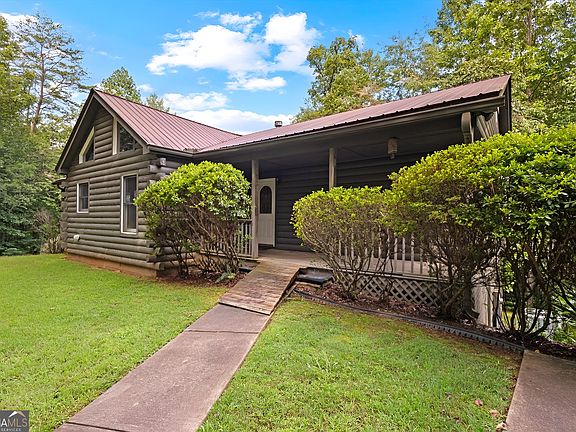 Tucked into a private, wooded backdrop, this log-sided cabin offers a rustic charm with plenty of space to spread out. The main level features just over 1,200 square feet with a warm, open feel created by wood accents, vaulted ceilings, and exposed beams. A wood-burning fireplace anchors the living room, making it a cozy retreat. The split-bedroom layout provides privacy, with a primary suite that includes a walk-in closet, soaking tub, and separate shower. Both bedrooms on the main level open to a screened porch that spans the length of the home-an ideal place to relax and take in the surroundings. The daylight basement, nearly finished, expands the living space with additional bedrooms, a full bath, and a large flex room with its own fireplace and access to the covered porch below. With its creek-side setting, ample parking, and metal roof, the property is full of potential for someone ready to add finishing touches and make it their own. This cabin combines rustic character, flexible space, and a private setting while still being convenient to Ellijay and the Cohutta foothills. Schedule a tour and explore all the possibilities this unique property has to offer.