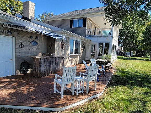 Taking Backup Offers. Exceptional Waterfront Home with Spectacular Views. This beautiful waterfront home offers the perfect blend of elegance, comfort, and breathtaking scenery. Nestled among mature shade trees, it provides stunning water views, refreshing summer breezes, and unforgettable sunsets. Designed for both relaxation and entertaining, this home is an ideal retreat for creating lasting memories with family and friends. Features & Highlights: Expansive kitchen built for entertaining, featuring a raised counter with seating for six, built-in shelving, and a walk-in pantry. Two inviting fireplaces—one in the dining area and another in the living room. Dual master suites on both the first and second floors for added comfort and convenience. Three full bathrooms with modern finishes. Walk-in closets offering ample storage space. Real hardwood floors throughout, adding warmth and character. Private pier and boatlift, perfect for enjoying waterfront living. New in 2015 - septic tank and drain field. Upgrades (2017 & Later): Second-floor addition, Renovated kitchen and bathrooms, Sunroom with climate control, HVAC system, 200 amp electrical upgrade, Water filtration system and well pump, Roof and siding, New washer and dryer (2023).
