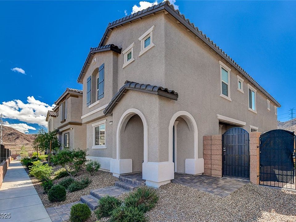 Nestled in a quiet and safe gated community of just 55 homes, this 2-year-old residence offers a rare combination of comfort, convenience, and modern upgrades. Enjoy direct access to scenic biking and hiking trails right behind the home, plus community amenities including a fitness area, dog park, BBQ, and grassy gathering space with plenty of guest parking. The property boasts stunning mountain views with no front neighbor—perfect for enjoying breathtaking sunrises and sunsets. The backyard is fully customized with turf and pavers, and the home is pet-friendly with a built-in doggy door. Modern touches include keyless entry at both the front door and garage, as well as a Siri-enabled smart garage door system. Inside, the spacious master suite features two large walk-in closets, a granite shower, and an oversized soaking tub. The home is upgraded with granite countertops throughout, quartz countertops in the kitchen, and a cozy upstairs loft ideal for relaxing or entertaining.