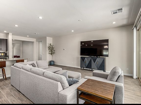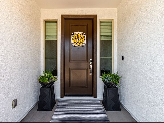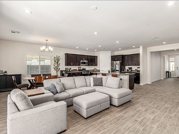 Wood-look tile flooring flows throughout all the main areas of the home, an easy-to-decorate neutral palette, & a spacious great room with 12' sliding doors to the backyard make it ideal for entertaining. The pristine kitchen features plenty of espresso cabinets, a walk-in pantry, quartz counters, built-in appliances, & an island with a w/breakfast bar. The main retreat boasts plush carpet and an en-suite with dual sinks, a sit-down shower, and a walk-in closet. The backyard is perfectly sized & provides a relaxing covered patio ideal for having your morning coffee. This home won't disappoint Interior Upgrades: