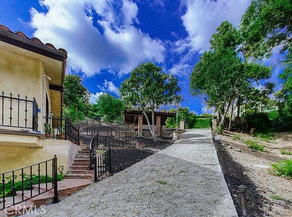 Exquisite Mediterranean Estate designed and built by Dugally Oberfield that has designed homes for such as for Denzel Washington and many more. This home is located in beautiful La Habra Heights with a private villa setting making for the perfect entertainment home along with a custom-built basketball/volleyball court. Featuring 5 bed | 3.5 bath | 4,384 Sq ft | 39,206 sq ft lot., with a separate Guest House that is approx. 1,500 sq ft with 2 bed | 1 bath its own kitchenette, bathroom, living room. This home has it all with the beauty of mature trees surrounding the property allowing you to envision your lemon/orange groves or even adding your own vineyard. The Villa also includes inviting pool, spa, sauna, outdoor living room with a fireplace, a separate outdoor meditation area with a fire pit, waterfall, a newly built pool deck, bonus workout room, wine cellar, 2 fireplaces in the main house, and another fireplace in the guest house. The main house is single level 3 Bedrooms/2.25 Bathrooms with an open floor plan and high ceilings. The gourmet kitchen has all of the amenities a chef needs with a large island with stone countertops, a double oven Viking stove, dishwasher, built-in commercial grade refrigerator and separate freezer, additional refrigerator drawers, a farmhouse sink, that opens to the wood beamed ceiling family room. With doors leading to the outside from nearly every room, this Villa truly embodies both outdoor/indoor living. Outside the family room is a covered Italian columnesque outdoor entertainment area with a fireplace that overlooks the pool, sauna, jacuzzi and outdoor shower. The master bedroom is impressive with its wood beamed high ceiling, oversized walk-in closet and large, gorgeous master bathroom with marble tile and 4 extra additional closets. Add'l features: privately gated, 2 car garage, 2 carport and additional parking in the rear, parking accommodates over 13 cars. Newly upgraded electrical panel and workout room suited with mirrors along the walls. Dont miss the opportunity to make this place your forever home !