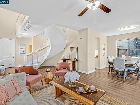 Nestled within the picturesque California Chateau of Danville Ranch neighborhood in West Danville. This charming single family home offers a serene retreat surrounded by nature, set on a corner lot, with two story 4 bedrooms, 2.5 bathrooms, and 2,080 square feet of living space. The kitchen featuring granite countertops, Stainless Steel appliances, a gas cooktop, and a convenient microwave oven. Two gas started fireplaces add warmth and ambiance to both the living and family rooms, creating inviting spaces for relaxation and gatherings. Ascend the elegant spiral staircase to find a spacious primary bedroom retreat, providing a tranquil oasis for rest and relaxation. The family room and dining room combined, access to patio, overlooking the serene backyard, perfect for quiet moments or lively entertainment. Conveniently located with easy access to Highway 680, this home is just minutes away from shops, restaurants, and the vibrant downtown area of Danville, making it an ideal place to call home for those seeking both tranquility and convenience.