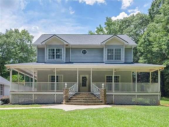 Dreaming of country living without giving up the conveniences of shopping, dining, and everyday amenities? Look no further! This stunning 6.99-acre property has it all. The charming main residence offers 3 bedrooms and 3 baths, complemented by a separate guesthouse—perfect for extended family, rental income, or a private retreat—as well as a horse barn with power and water for those eager to bring horses or farm animals. Step onto the welcoming wraparound porch, and inside you’ll find a home designed for both comfort and entertaining. The main level features a spacious dining room, a versatile office/flex space, a cozy family room with fireplace, sunroom, and a bright breakfast area. The kitchen shines with granite countertops, a butler’s pantry, and plenty of room for gathering. Upstairs, the oversized primary suite boasts tray ceilings and a spa-inspired bath with double vanities, a large shower, and a relaxing jetted tub. Two generous guest bedrooms, each with a private vanity and shared bath, provide comfort and convenience. Outdoor living is a true highlight here. Host gatherings by the resort-style pool from your covered patio, enjoy plenty of open space, and take advantage of the additional guesthouse/man cave featuring its own kitchen, living and dining areas, bedroom, bath, covered parking, and unfinished upstairs storage. The property also includes a detached garage/workshop with a 9’ door, gated entry, wooded privacy, fencing, and of course, the horse barn with stalls—making this a rare opportunity to own a private country retreat that blends lifestyle, functionality, and endless possibilities. Don't miss your chance to own this beautiful property. Ask how you can receive up to $1500 credit by using one of our preferred lenders. Exclusions may apply.