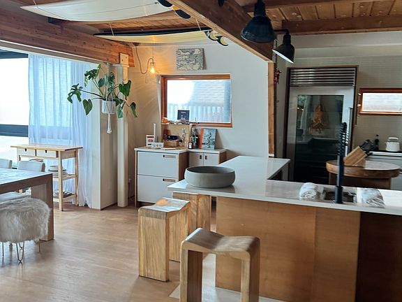 Ocean front home perched on bluff with private beach stairs to fun surf break. Low crowd factor (hard to access publicly).