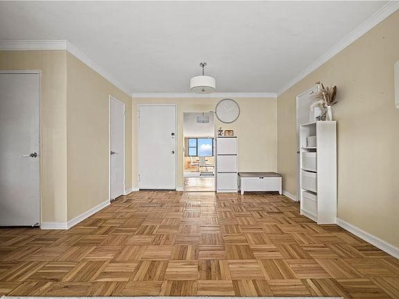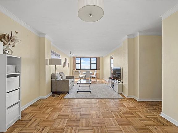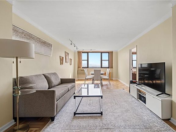 Spacious Renovated 2-Bedroom Co-op with Stunning Skyline Views & Full-Service Amenities Move right into this beautifully renovated 2-bedroom, 1-bath co-op offering comfort, style, and convenience in one of the area's most desirable full-service buildings. Recently renovated in 2024, this sun-drenched home features a sleek, modern kitchen appointed with marble countertops, a dishwasher, and brand-new appliances. The spacious layout features a generously sized walk-in closet, providing valuable storage and added functionality. The tastefully remodeled bathroom and refinished hardwood floors throughout further enhance the home's refined aesthetic. AC units are included for year-round comfort. Oversized windows invite an abundance of natural light and showcase breathtaking open skyline views, creating a bright and airy ambiance throughout the living space. This pet-friendly building, with no restrictions, offers an array of full-service amenities, including 24-hour doorman service, a seasonal swimming pool, newly renovated hallways, and a recently upgraded laundry room located in the basement. With a low monthly maintenance fee of $1,460.70 covering all utilities except electricity, this is a rare opportunity to own in a well-maintained, financially sound co-op. Subletting is permitted after one year.