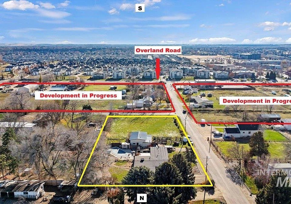 This high visibility and easy access development location, off the Eagle exit of I-84, just east of the Eagle/Overland intersection, offers the opportunity to join the surrounding mixed use (completed and in progress) projects and capitalize on the versatility of future multi-family, commercial, retail, or combination of all. The sale includes a 2400 sf, 4 bedrooms, 3 bath home, with in-ground pool, several outbuildings and pasture. Perfect to generate rental income to offset costs while working thru planning.