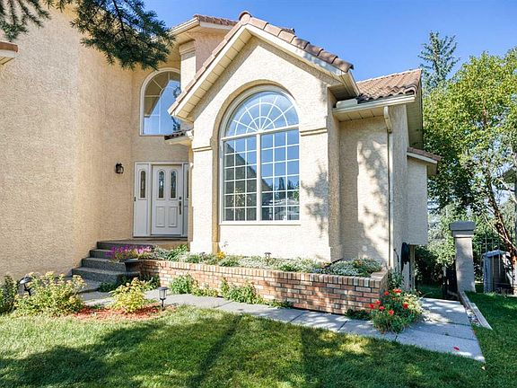 Welcome to this elegant home with a durable clay tile roof, offering over 4,000 sq. ft. of developed living space with 4+1 Bedrooms and 3.5 Baths. Set apart by its soaring spaces and thoughtful design, this home is perfect for a growing family, balancing comfort with style across its multiple levels for everyday living and entertaining. The main floor greets you with a 17’ high ceiling foyer and a graceful spiral staircase. To the right, the sunny south-facing Living Room and formal Dining Room share an 11’7” vaulted ceiling and gleaming hardwood flooring, creating a warm and inviting atmosphere that easily fits an 8-person dining table. The bright white Kitchen features a centre island with quartz countertops, ample cabinets, and a pantry, seamlessly connecting to the Breakfast Nook with access to the large 17’ x 10’8” Deck with gas hookup, perfect for morning coffee or relaxing evenings outdoors. A spacious Family Room with built-in bookshelves, a wood-burning fireplace, and large windows is perfect for gatherings. A private Den with French doors, Powder Room, and Laundry with sink complete this level. On the upper level, the spacious Primary Bedroom includes a cozy seating area with distant views of downtown, and a luxurious 5-pc Ensuite featuring a double vanity, jetted tub, and walk-in closet. Three additional Bedrooms and a full Bath with double vanity provide ample space for family. The fully finished walkout basement boasts higher ceilings and a massive Recreation Room with built-in shelves, a sink, and a gas fireplace. This versatile area can easily be divided into two separate spaces—currently set up as a gym and a family lounge. A good sized Bedroom and 4-pc Bath complete this level. Step out to the covered patio and landscaped backyard, with a concrete pathway leading to the front yard and the oversized double attached garage. Located in the desirable Shawnee Slopes community, this home is steps from Fish Creek Provincial Park and close to top-rated schools. Residents can also enjoy the Millrise Outdoor Rink during winter, perfect for skating and community events. Easy access to Shawnessy Shopping District and convenient transit options complete this safe and welcoming neighborhood.