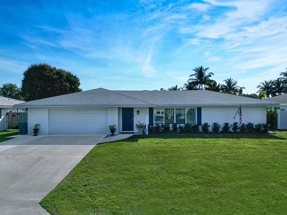 Stunning Waterfront Home with Modern Upgrades!! Welcome to your dream home! This beautifully remodeled 4-bedroom, 2-bath split-floor-plan property is packed with luxurious features and modern upgrades, offering both style and functionality. Interior Highlights: New recessed lighting and updated permanent fixtures throughout, including elegant gold accents and new ceiling fans in every room. All new bathrooms, tastefully designed with high-end finishes. Gourmet kitchen with brand-new granite countertops and plenty of workspace. New flooring adds a fresh, modern touch to every room and freshly painted throughout. Spacious walk-in closets in all bedrooms for optimal storage. Advanced ADT system and Ring cameras ensure top-notch security. Exterior Features: New Roof and hurricane-impact windows for peace of mind and energy efficiency. Freshly painted inside and out, offering a clean, contemporary look. Extended patio with pavers and an enchanting trellis featuring a soothing fountainperfect for outdoor relaxation or entertaining. Ligustrum trees provide a natural privacy fence. New irrigation system to keep the landscaping lush and vibrant. Widened driveway and a new garage door for convenience and curb appeal. New outdoor lighting enhances the home's charm after dark. PRIME location and rare find! DON'T MISS OUT on this opportunity to make this your forever home!