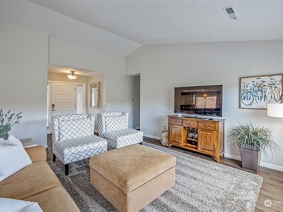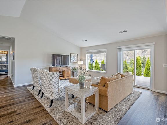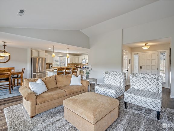 Welcome to River Rock Retreat! This ideal vacation getaway & investment property is located at the entrance of Sunland Estates, perfectly positioned between majestic basalt cliffs & the Columbia River, offering stunning 180-degree views. This turn-key home boasts new hardwood floors, is fully furnished, & ready for guests. Open-concept design is perfect for entertaining, w/ living & dining areas flowing into the kitchen. Spend your days boating on the river (the boat launch is across the street!), relaxing & BBQing on the spacious deck, or enjoying a concert at the nearby Gorge. With over $25K in 2024 income already booked & transferable to the new owner, this meticulously maintained home offers both relaxation & lucrative rental potential.