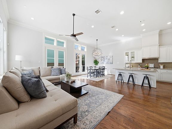 Welcome to this beautiful 3-story single-family home offering a functional floor plan & exceptional versatility. The main living area on the 1st floor features extra-tall ceilings, rich hardwood floors & an inviting deck that flows seamlessly into the side yard. All bedrooms are conveniently situated on the 2nd floor, including a massive primary suite w/ spacious spa-like bathroom, dual vanities & his-&-hers walk-in closets. The 3rd floor offers a sprawling game room complete w/ full bath making it ideal for a 4th bedroom, media room, or private retreat. A rooftop terrace extends the living space w/ endless potential. Storage is abundant throughout the home w/ oversized closets & thoughtful built-ins that enhance everyday convenience. Nestled within an intimate, well-maintained gated community, the home offers quick access to shops, parks, grocery stores, restaurants & major highways for effortless commuting. This property blends comfort, style & flexibility to suit any lifestyle.