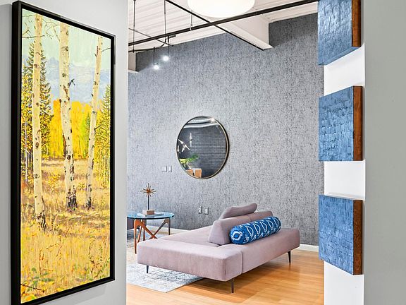 Urban sophistication meets mountain views in this downtown Boulder residence. Just one block from Pearl Street Mall, this luxury loft offers a rare blend of industrial character and refined design within a secure, low-turnover building. Southern exposure floods the open layout with natural light, while the private balcony captures sweeping Flatiron and sunset views. Inside, high ceilings, exposed ducts, and painted brick walls evoke a modern loft aesthetic, complemented by chic upgrades throughout. The kitchen impresses with cherry cabinetry, granite countertops, a pantry, and upscale stainless steel appliances. The living area showcases new custom wallpaper, a built-in cherry bookcase, and a fireplace that anchors the space with warmth and style. Retreat to the serene primary suite featuring California Closets and motorized Bali blackout shades. Additional highlights include bamboo flooring, a new HVAC system with a 10-year warranty, secured entry, an elevator, underground parking with storage, and an upcoming EV charging station option.