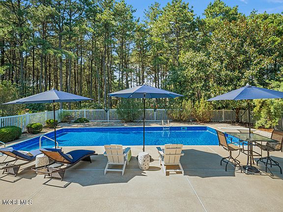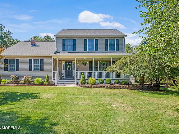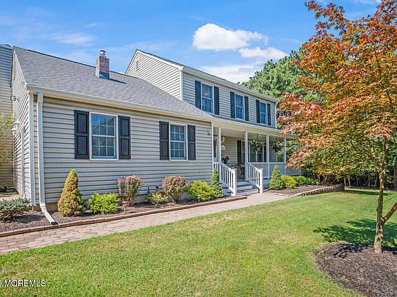 Nestled among the pines this meticulously cared for colonial has been lovingly maintained. Professionally landscaped overlooks privacy trees w sprinklers on well. Maintenance free vinyl siding, soffits and gutters and inviting front porch. All new luxury vinyl plank floors throughout the first floor appointed w plantation shutters. Stainless steel appliances and corian counters w breakfast bar. Newer windows & 6 panel doors, wains coating in hall & staircase. Huge 24ft family room w gas fireplace & sliders overlooking resort deck w retractable awning and patio & saltwater pool. Finished carpeted basement. Other amenities 6 yr old roof, 3yr old AC, new renovated baths and loads of high hat lighting. Totally turn key! Your buyers will love this home!