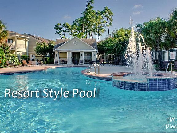 Stylish open layout in highly sought after gated neighborhood. Quality finishes, dramatic 2 story family room, covered patio, gas log fireplace w/remote, 42-inch maple cabinets, stainless appliances, Corian counter tops and integrated sink. Huge master retreat with plant ledge. Resort-style pool & cabana, green areas, walking trails and more. Washer, dryer & refrigerator included. Water/sewer, trash pickup included and front and backyard maintenance included.