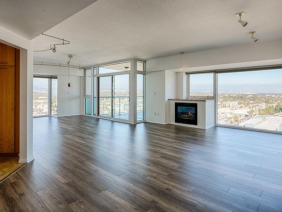 Enjoy the resort-style living in the stunning, full service high-rise REGATTA! This premier, private corner location 2 bed 2.5 bath PENTHOUSE boasts new wood floors & new Berber carpet 180 degree coastal, city, city lights & mountain views. The ultra bright, airy & expansive open floor plan include all around floor-to-ceiling glass walls & high ceilings, living rm w/gas fireplace, access to the over-sized balcony w/ gas BBQ hook-up, & all marble baths and entry.The gourmet kitchen has granite counters, maple cabinets, quality appliances & eat-in area.The large master bedrooms suite has good separation from the en suite guest bedroom. Be pampered by the attentive staff, concierge service & complimentary guest valet parking. Additional amenities include a sparkling 60ft. pool w/ spa, fire pits & cabanas, fitness center, screening room & more. Ideally located close to restaurants, shops, beach bike path,movie theaters. Centrally located yet 10 minutes to LAX airport & easy freeway access. Rent includes direct TV, internet, water & gas.