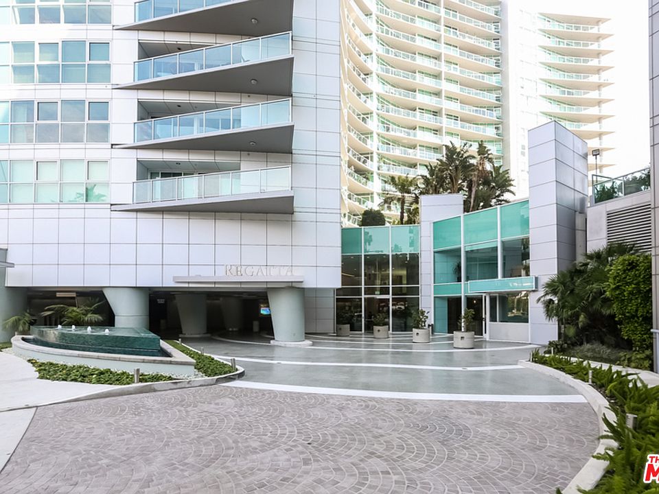 Very zen-like and crisp 1 bedroom, 1.5 bath + den/office in the architectural Regatta, designed by Donald Getman, AIA, GMP Architects. Beautiful pool, garden and tree top views! The spacious floor plan has a large living room with gas fireplace, a spacious dining area with built-ins & a large master suite. Additional features include: marble baths & entry, a granite & maple gas gourmet kitchen with breakfast area , floor-to-ceilings glass windows, & an over-sized balcony w/gas BBQ hook-up. Full service high-rise with resort-style amenities: 24-hour controlled access, concierge, valet parking, pool/spa, sauna, gym, recreation lounge, screening room, conference room & library. Close to shops, restaurants, boating, the beach 25-mile bike path. Easy access to 405 freeways, 10 minutes to Lax. 2 car parking.