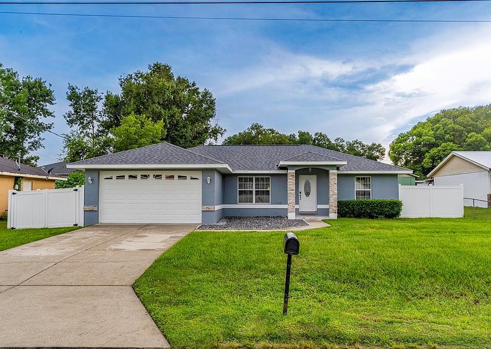 Welcome to your dream home in a prime location! This charming residence is ideally situated just minutes from The Villages and a short 15-minute drive to Ocala. Enjoy the freedom of no HOA restrictions while relishing the privacy of a fully fenced yard. Inside, you'll find numerous upgrades that add modern touches to this inviting space. The perfect Florida room offers a serene retreat for relaxation or entertaining. The exterior of the home has been recently painted, showcasing its beautiful curb appeal. Whether you're searching for the perfect starter home or a savvy investment property, this gem is a must-see! Don't miss out on this exceptional opportunity!