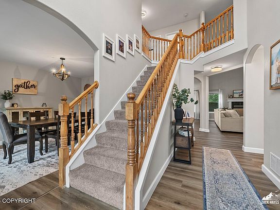 Motivated seller, price reduced! Updated Powder Ridge home near JBER & top schools. Chef's kitchen, soaring ceilings, fenced yard w/ zipline & fort. Walkout basement (1192 SF, not in main sq ft) offers $80K-$100K potential. Deck structurally improved w/ bracing, new hardware, added support post/beam, & select new boards stained to match for strength and longevity. Move-in ready with room to grow!This move-in ready home in Powder Ridge offers comfort, style, and rare investment potential. Recently updated and now priced to sell, it's ideally located near JBER, quality schools, parks, and trails. Main Living: A grand entry with vaulted ceilings leads to bright, open spaces and a cozy gas fireplace. The chef's kitchen features solid-surface counters, decorative lighting, and two pantries for abundant storage. New luxury vinyl plank flooring and fresh paint create a modern, inviting feel. Upstairs: Four bedrooms include a primary suite with coffered ceilings, dual closets, and a remodeled bath with jetted tub, tiled shower, and dual vanities. The upstairs laundry comes with a high-end washer and dryer, making daily routines a breeze. Basement Bonus: The partially finished walkout basement (approx. 1,200 SF not in the main sq ft) is a huge value add. A licensed contractor has reviewed the space, with potential for additional bedrooms, bath, a second kitchen, or full separate living quarters. Estimated value once finished is $80,000-$100,000 a true opportunity for investors or multi-generational families. Backyard Retreat: Fully fenced with lush lawn, mature trees, a tree fort, and zipline perfect for kids and gatherings. The deck has been structurally improved with bracing, new hardware, an added support post/beam, and select new boards stained to match, offering peace of mind and durability for years ahead. Additional Features: " Oversized heated 2-car garage (~600 SF) " Decorative lighting & ceiling fans " Seasonal mountain views " Convenient to shopping, dining, and recreation Why This Home? Few homes combine immediate livability with future upside like this one. From its updated finishes to its significant basement potential, this is an opportunity to move in now and grow into the home's full value over time. Motivated sellers, price reduced! Don't miss this chance schedule your showing today and see why this Powder Ridge property is one of Eagle River's best finds.
