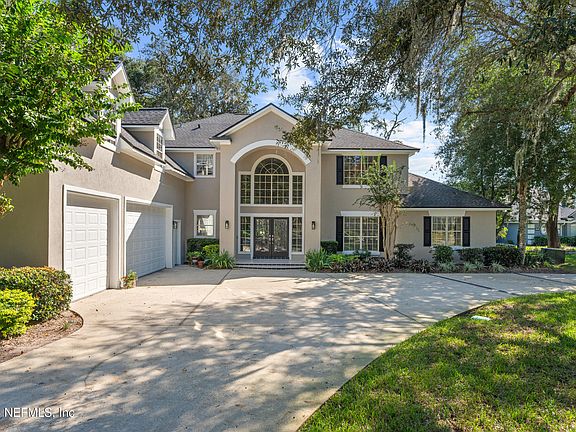 Poised on a generous 0.6-acre corner lot in a private cul-de-sac, this stately 6-bedroom, 4-bath residence offers an extraordinary opportunity to experience elevated coastal living. Set within the prestigious, guard-gated community of Queens Harbour, this home features navigable waterfront access complete with a private dock and boat ramp, fully outfitted with electric and water hookups—perfect for those who desire effortless access to the Intracoastal and beyond. The freshly painted interior and exterior provide a crisp, modern canvas for the home's refined architectural details and thoughtful upgrades. A fully renovated primary suite offers a luxurious retreat, while new HVAC systems and a new water heater ensure comfort and peace of mind. Majestic oak trees frame panoramic water views, creating a serene backdrop for both everyday living and sophisticated entertaining. Residents of Queens Harbour enjoy an array of world-class amenities including a championship golf course, marina, tennis and pickleball courts, resort-style pools, and a state-of-the-art fitness facility.