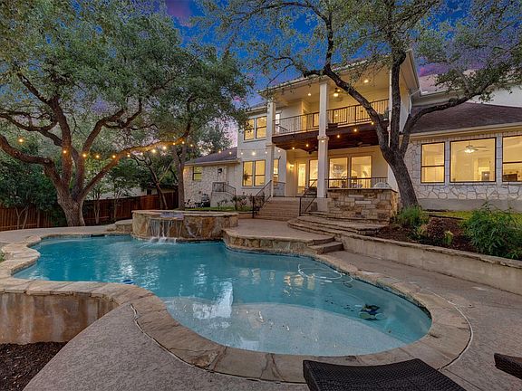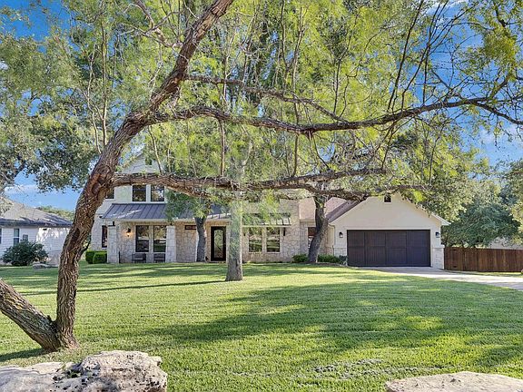 Privacy abounds at this half-acre tree-covered sanctuary, where creatures both two and four-legged will enjoy running around on the lush grass. This updated home is an entertainer’s dream - excellent flow for a gathering in the open-concept first-floor living|kitchen|dining space with new wood floors. The entire kitchen has been recently renovated; shiny new stainless-steel appliances too! Plenty of seating at the kitchen counter + a generous island provide a prep area where you can watch guests splash around in the pool. HUGE 4-car garage with space for all the toys - including your boat. Three covered outdoor areas where you can read a book + listen to the birds. And this backyard is what dreams are made of: a pool with a waterfall feature from a spa, an outdoor kitchen with a grill + fridge, and a fire pit to gather around on cooler nights. Enjoy a spirited game of touch football on the back lawn, plant your own vegetables, or lounge nestled under the canopy of majestic oak trees. Two bedrooms on the main level, including a primary suite with views to your backyard that give it a treehouse vibe. Large upstairs game room can flex to be used in a number of ways - workout, media room, bunk room, etc. Visit the virtual tour link for a Matterport 3D walk-through. 2025 updates + improvements: new kitchen cabinets, sink, stainless-steel appliances (6-burner cooktop, oven, microwave, dishwasher), quartzite countertops, wood floors, carpeting, interior + exterior paint, water heater, landscaping + more. Pack a lunch, grab your dog + your paddle board for fun at Fritz Hughes Park on Lake Austin - less than 1/2 mile from your new home. Ten minute walk to Jessica Hollis Park and trails to walk, bike, etc. Zoned to Leander ISD - greatschools.org ratings: Steiner Elementary (7/10), Canyon Ridge Middle (9/10), Vandegrift High School (9/10).
