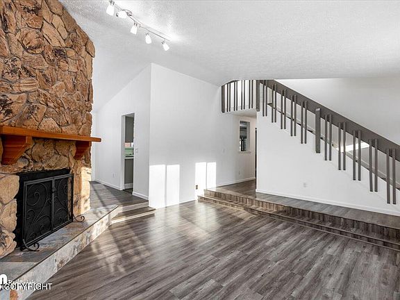 South Anchorage 4 bed, 2 bath, 2152 sqft home! Features vaulted ceilings with lots of natural light, new flooring throughout, fresh paint, stainless steel appliances (new fridge & dishwasher), new sink/disposal, and breakfast bar in the kitchen. Main level master, large 2nd family/entertainment room, fireplace, flex dining/office space, 2-car garage, fenced yard with shed, RV parking. No HOA...great schools & neighborhood.