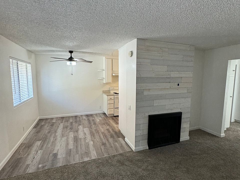 Freshly Painted home. This unit has an amazing view of the garden and the jacuzzi spa. Faux Fireplace New Carpet throughout the home. The property has 2 onsite laundry facilities. A Pool and Jacuzzi. It is located in Whittier, CA near the QUAD shopping centers. The Whittier public Library is close by. 2 Bedrooms and 1.5 Bath overlooking amenities 1 covered carport Renter is responsible for all utilities. 1 covered car port. Fireplace
