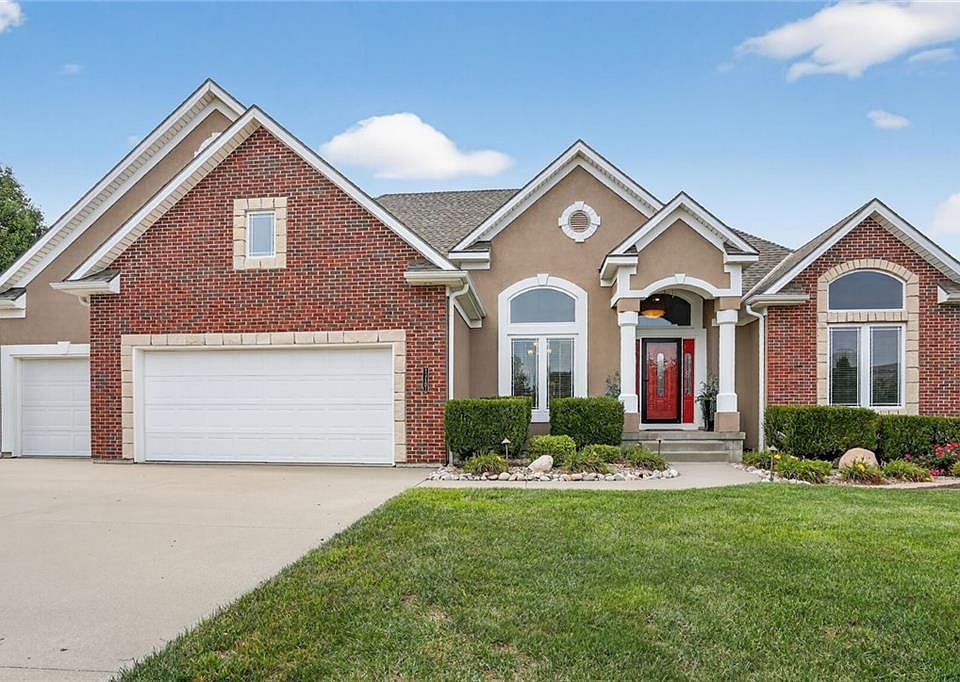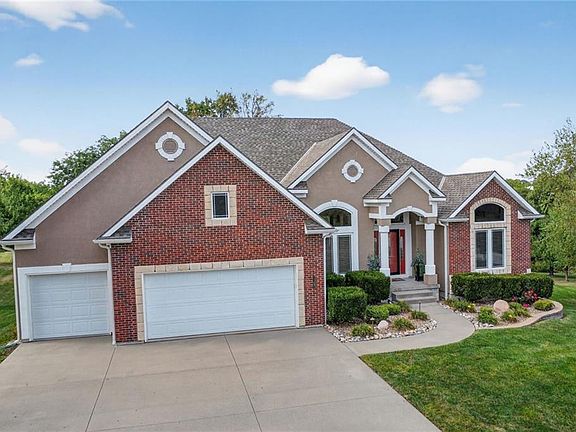 This custom-built 4 Bedroom, 3.2 Bathroom home w/4-Car Garage in Johnson Ridge offers over 4,100 sq.ft. of craftsmanship & thoughtful design by Gary Kerns Homebuilders. Situated on a private cul-de-sac lot, 1+ Acre; the property features landscaping, mature trees, & a park-like backyard setting. Step inside from the covered Front Porch to a grand Entry w/leaded glass door, hardwood floors, & 12' ceilings. The open Dining Room includes crown molding, a chandelier, & two large front-facing windows w/arched transoms. The Great Room offers a gas fireplace w/wood mantle, boxed-beam ceiling, & expansive backyard views. The Kitchen blends function & style w/raised panel cabinetry, granite countertops, pull-out shelving, & a large hidden walk-in pantry. Stainless steel appliances, a built-in convection oven, & an eat-up island make this space ideal for everyday living and entertaining. The adjacent Dining Area opens to a screened-in covered deck w/composite flooring, ceiling speakers, privacy blinds, & a grilling area for outdoor gatherings. The spacious Primary Suite features double-tray ceilings w/indirect lighting, 3 large windows, & an ensuite Bathroom with double vanities, jetted tub, separate shower & custom walk-in closet. A secondary Bedroom & Full Bath complete the main level. Option for an office! A silent floor system between the main & lower levels helps eliminate sound transfer, keeping the lower level quiet & comfortable. Downstairs, the finished lower level offers a large Family Room w/built-in media center & surround sound, 1/2 Bath, Complete Bar w/ granite & Corian counters, beverage fridge, & walk-out access to a covered patio. 2 additional Bedrooms & a connected Bathroom w/private vanity areas provide ample bedrooms. Additional highlights include a tandem 4-Car Garage w/workshop area, irrigation system, Vivint security system & abundant storage. Located in the Smithville R-II School District near Horizon Elementary & Smithville High. A true ESTATE HOME!