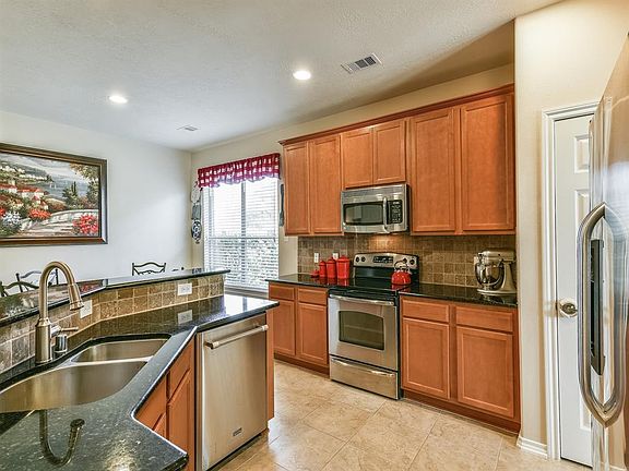 Welcome to 13603 Summer Spring Lane. This beautiful one story home features a stone front elevation and a private back yard with no back neighbors, and has a full remote sprinkler system. This home includes a beautiful open concept kitchen with granite, and the kitchen refrigerator is included with the sale of the home. The garage floor has an epoxy paint and tons of storage as well as a keyless entry access. Also included with the home is a Whirlpool self cleaning water filtration system. Additional storage in the attic! Make your appointment today....this home will not disappoint you! Call today!