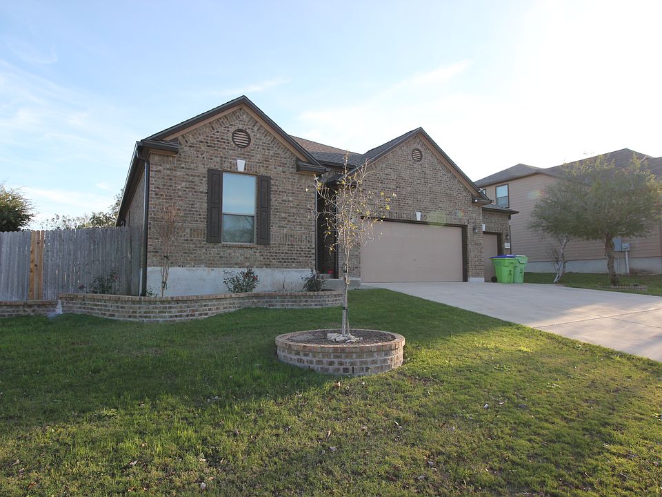 Gorgeous Corner Lot Home - 4 Bed / 2.5 Bath - Move-In Ready! Beautiful one-story home featuring 4 bedrooms and 2.5 baths in a quiet, established neighborhood. Open-concept floor plan with NO carpet throughout. The study has been converted into a fourth bedroom. Primary suite includes a walk-in shower. The kitchen comes equipped with refrigerator, washer & dryer, water softener, and filtering system. Solar panels offer significant monthly utility savings. Enjoy the spacious backyard with custom pergolas, outdoor seating, and mature fruit trees, plus two rectangular garden beds bordered with cement blocks. Exterior includes solar-powered lighting and security camera capability. Community amenities include a pool, playground, basketball court, walking trails, and indoor gathering center. Convenient location with quick access to Loop 1604, I-10, and just minutes from UTSA, JBSA-Lackland, SeaWorld, Six Flags, and La Cantera Mall. Pet policy: Dogs allowed upon owner approval with photo submission. This home is exceptionally clean, easy to show, and available for immediate move-in.
