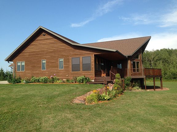 Our dream home, custom built in 2007. 1689 sq ft plus screen porch and wrap around deck. Attached 28' x 24' garage with basement entrance. Ranch style home, 3 bedroom, 2 bath, handicap accessible; including main floor laundry, roll-in shower and 36" doors. Jetted tub in master bath. Open concept kitchen/dining/living room with unique barrel ceiling. Gas fireplace upstairs and EPA rated wood fireplace downstairs. Central air and LP heat. Home built to be energy efficient with southern exposure and spray foam insulation. Basement is ready for expansion including 3rd bath and in-floor heat. Outbuilding: 40' x 30' insulated shed with separate 200 amp service. Shed was constructed with expansion in mind. Very private setting on approximately 10 acres with pond and woods. Abundant wildlife and enough woods to make your own firewood.