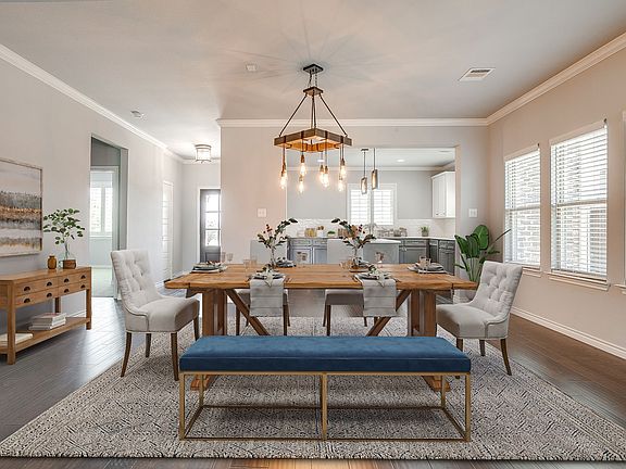 Beautiful single-story in sought-after Walsh Ranch, Aledo ISD! This home charms with a brick-and-stone exterior, inviting front porch, and peaceful greenbelt views. Open-concept living features hardwood floors, a gas fireplace, and walls of windows for natural light. Chef’s kitchen offers an island, quartz counters, two-tone cabinetry, gas cooktop, stainless appliances, and plantation shutters. Private owner’s suite boasts a vaulted ceiling, dual sinks, soaking tub, glass shower, and walk-in closet. Enjoy a covered back patio, fenced yard, and alley access. Just steps from Walsh’s unmatched amenities—Village Market, resort-style pools, fitness center, tennis, playgrounds, lake with dock and fishing, dog parks, and miles of trails—offering a vibrant community lifestyle you’ll love coming home to!