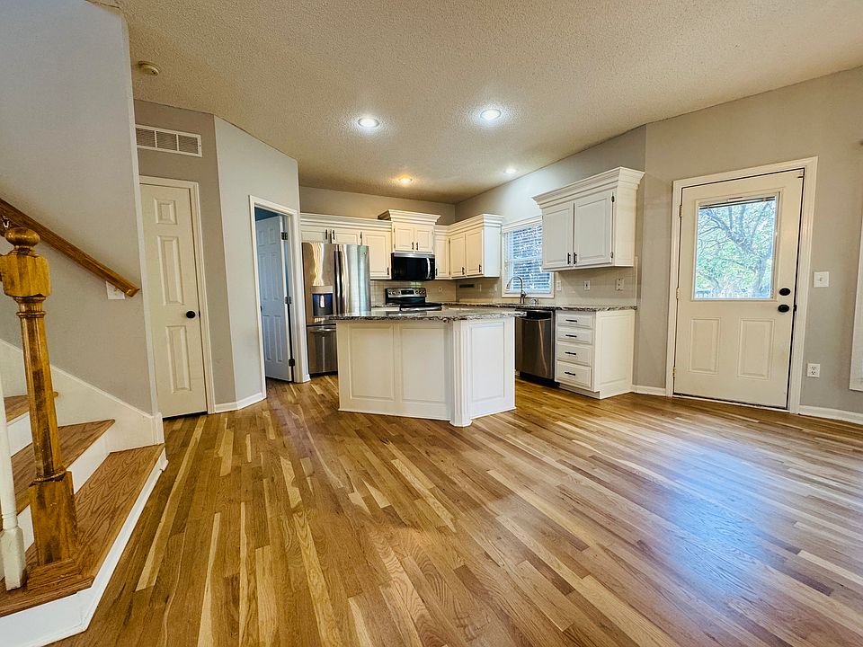 Spacious and freshly updated 4-bedroom, 3.5-bathroom home located on a quiet corner lot in the sought-after Bradford Falls neighborhood. Featuring brand-new luxury flooring throughout the main level, this home offers both style and comfort in a family-friendly area with top-rated schools. The open-concept layout includes a modern kitchen with granite countertops, stainless steel appliances, and a large center island. The vaulted master suite includes an en-suite bath and walk-in closet, while the upstairs laundry adds convenience. A finished basement provides extra space for entertainment, a home office, or storage. Enjoy evenings on the back deck, and take advantage of the extra privacy of the corner lot. Side-entry two-car garage included. Don't miss this move-in ready home in a great Olathe location close to parks, shopping, trails, and award-winning schools. Renter responsible for utilities. No smoking allowed. Washer and dryer provided. Any tours will need to be planned with landlord's availability. Lease term options: flexible. Security deposit will be collected at lease signing. First month's rent will be due at start of lease date.