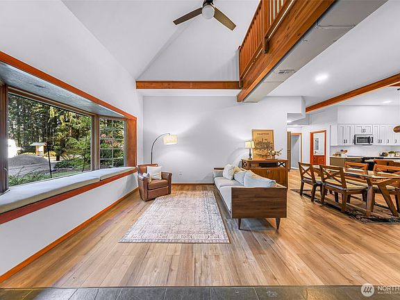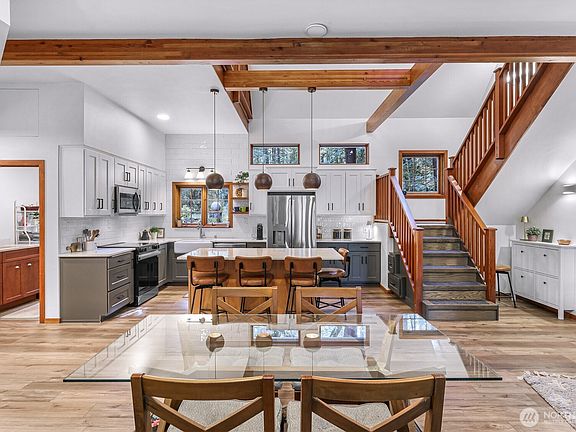 Welcome to this enchanting 4.8-acre estate, featuring stunning English gardens & custom-built 2710sqft NW home. First time on the market, this residence exudes warmth & character. The inviting main level showcases updated gorgeous chef’s kitchen, spacious great room w/soaring beamed ceilings & fireplace, bedroom, full bath, laundry. Upstairs, 3 generous bedrooms, beautifully remodeled bath w/heated floors & loft. Gorgeous flooring flows throughout, enhancing the home’s natural charm. Outdoor living w/covered patios, chicken coop, garden spaces. Large garage/shop with additional carport & RV hookups. With a durable metal roof, space for a potential ADU, & serene garden paths, this property offers rare privacy, beauty & endless possibilities.