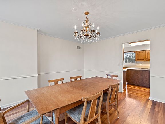 A circular drive invites you to this elegant & classic brick colonial. Standing on 2 acres of natural beauty, the large private backyard is ideal for playtime or entertaining. Inside there are 3 levels of living space! Striking Jatoba Cherry floors flow throughout to the dining room & spacious living room. Eat-in kitchen enjoys views of the backyard. Grand family room shows off tall ceilings, warm wood, & inviting fireplace surrounded by built-ins. 3 season bonus room to enjoy the weather without the insects. Second level houses 2 beds & Primary en suite featuring 2 large closets. Third floor offers 2 more ample bedrooms but are perfectly set up as playroom, office or studio spaces with abundant natural light. There's a huge-ready-for-your-ideas basement and a tandem 3/4 ca garage too!