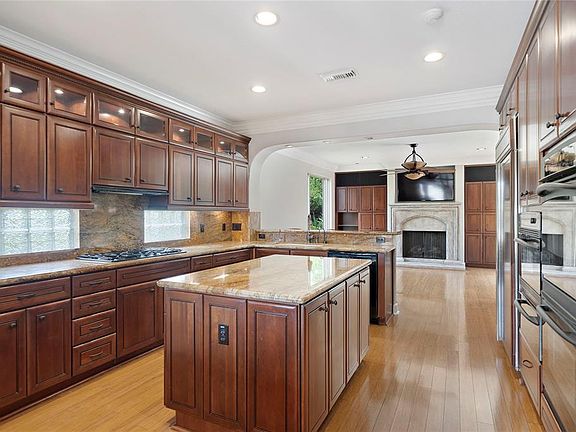 An amazing oasis in highly sought after Lakes of Parkway, This custom Kickerillo home comes with 5203 sq. ft, incredible lot size of 15,190, 5 bedrooms, 3/1 baths, custom kitchen with gas range, built in frig, double oven, island, custom cabinetry, upgraded granite, filtered H2O, hot water dispenser and breakfast bar. Formal living w/ French doors & phantom shades! Formal dining room complete w/added wet bar, granite, stone flooring, low voltage cove lighting, wine cooler and ice maker. Den with gas log fireplace. Master bedroom down with relaxing sitting area and French doors leading to a serene garden area. Master bath w/his & her sinks, walk-in shower and tremendous storage. 4 bdrms up w/lg. game room w/kitchenette, bar & granite counter tops. A refreshing saltwater pool and hot tub make this home truly amazing!. Lastly, bamboo flooring, acs replaced last 5 yrs, one in Mar., tankless water heater, slate roof, custom landscaping on a cul -de-sac street! Motivated sellers!