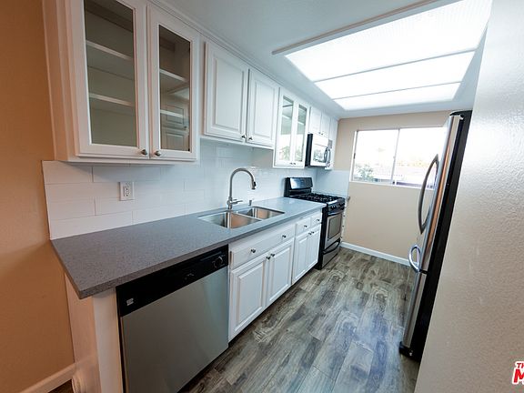 Experience the very best of Van Nuys in this contemporary townhouse located just minutes from restaurants and shops. Situated in the rear of a small building with lots of windows, sits this lovely 3 BR , 2.5 BA unit. Pull into your private 2-car garage and enter your fully remodeled kitchen with white cabinets, and gray Cesarstone counters. Adjacent to the kitchen is your dining area and LR, both framed nicely w/ oversized windows. New flooring throughout. Retire to the master with high ceilings,private balcony and spacious walk-in closet. The master en-suite bath is the perfect place to start your day with large vanity, and separate shower enclosure. The other 1 BR add'l full bath complete the 2nd floor layout. 1st level BR is perfect for an office or gym. Huge patio off the living room.