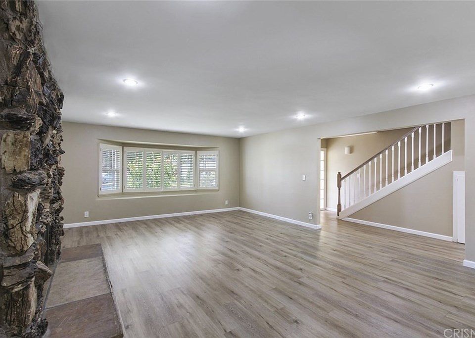 Cul-De-Sac in Valley Glen resides a breathtaking two-story beauty boasting 4 bedrooms, 3 bathrooms and over 2200 sq. ft. of living space! Stunning hardwood flooring runs throughout with thick baseboard moldings. In the spacious living room find a cozy fireplace and a large bay window that is great for seating. The formal dining room opens up to a remodeled kitchen equipped with granite counters, stainless steel appliances, refaced cabinets and a breakfast bar. There is one bedroom located on the first floor and 3 bedrooms located on the second. Other features in the home include ceiling fans in most of the rooms, recessed lighting, wood shutters, dual pane windows throughout the home that illuminate every room, as well as sliding French doors leading out to the backyard that can be accessed through the dining area. The backyard has a covered patio with a lush manicured lawn, colorful flowers and tons of privacy. You will most definitely adore this home!