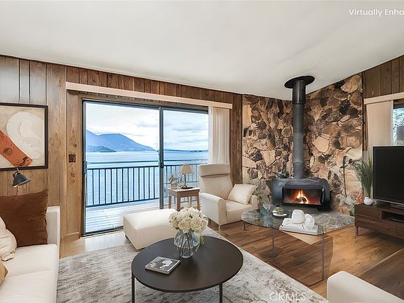 Welcome to this stunning property located in the highly desired neighborhood of Jago Bay. This is a rare opportunity to own a home that has been immaculately maintained by its original owner. New roof installed March 2024. One of the highlights of this property is that it includes 1/3 ownership of a lakefront dock. The home features two levels of decks offering panoramic views of the lake and Mt. Konocti, making it the perfect place to relax and unwind. The main floor of this home features an open floorplan with living room, dining room, a well-equipped kitchen, two bedrooms, and a bathroom. The bedrooms on the main level both have cedar closet floors to protect your woolen clothing from moths, and the lower level bedroom has a full cedar closet.The lower level features a spacious family room with double-door storage closet, the third bedroom a full bathroom and a laundry area. The downstairs also has an additional storage closet under the stairs. Both levels of the home have decks off the living areas, providing plenty of space for outdoor living. You will also find a generously sized workshop/storage area beneath the house, providing ample space for all your storage or workshop needs. The property also includes sheds for your tools and outdoor equipment. With its beautiful setting, rock walls, terraced areas of the yard, and convenient location, this property has great Airbnb potential for those who wish to share its beauty with others. Don't miss out on this opportunity to own a piece of paradise in Jago Bay. This home has been lovingly cared for and it shows. Schedule a viewing today and see for yourself all that this property has to offer! Some of the photos have been virtually staged.