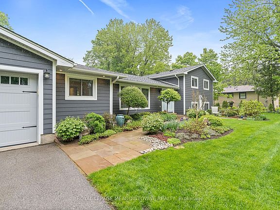 Picture perfect in Halton Hills. Gorgeous country home in mint condition and meticulously cared for with beautiful gardens and tons of curb appeal. Open concept kitchen with corian counters, stainless steel appliances and breakfast bar. Three bedrooms up with 4-piece and one conveniently located on the main floor with another full bathroom. Ideal set up for an elderly parent! The lower level is finished plus there is a huge and very useful crawlspace for your storage. An oversize two-car garage leads to the mudroom with laundry and large closet space. Beautiful views from every window. The backyard features a fabulous deck with a hot tub and a large pretty shed for all your toys. Shingles (2016), furnace, windows, air conditioner (2013) & Water heater and water softener (2023). Addition built in 2016. Extras include Acacia wood flooring, spray foam insulation, composite siding. It's just shy of 1/2 an acre. Ideally located close to Georgetown, Acton and minutes to the 401. Pride of ownership throughout. It's move-in ready and lovely!
