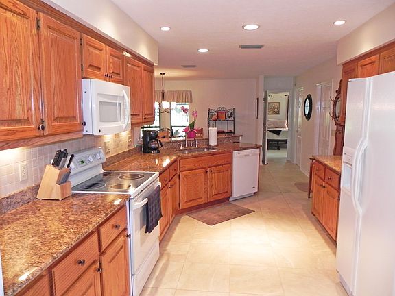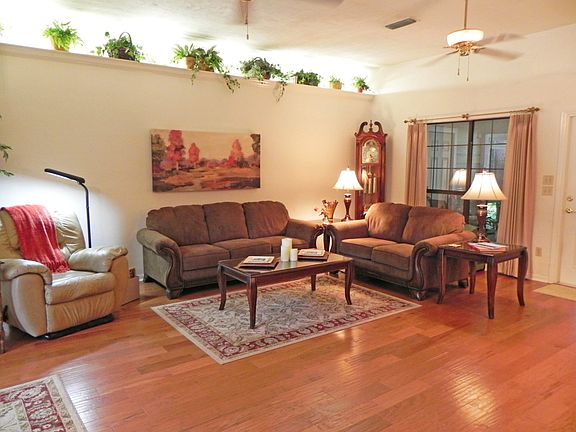 This open-plan 4-bedroom/2.5-bath home is situated on a large lot with plenty of room to grow. The entrance opens into a spacious family room with a fireplace; to the right, youâll find the formal dining area. In the living room, a doorway leads out to a fully-insulated screened porch with a hot tub while the floorplan continues into a small dining nook. The plan leads into the kitchen which features granite countertops, a roomy pantry, light wood cabinets, and white appliances. The three generous bedrooms offer plenty of storage space. The first two share a large bathroom with a single vanity and tub-shower combo; the back bedroom has its own en suite half-bath with a pedestal sink and doorway to the screened porch. In the master suite, youâll find lovely hardwood floors, crown molding, and doors to a small screened-in patio. Double French doors open into the recently remodeled master bathroom. The bath features a large wrap-around double-sink vanity with Corian countertops, a deep garden Jacuzzi tub, a large seamless glass shower with a bench and double shower heads, a large walk-in closet, and private toilet area. Other features include a utility room, double-car garage, newer HVAC system, and new drain field.