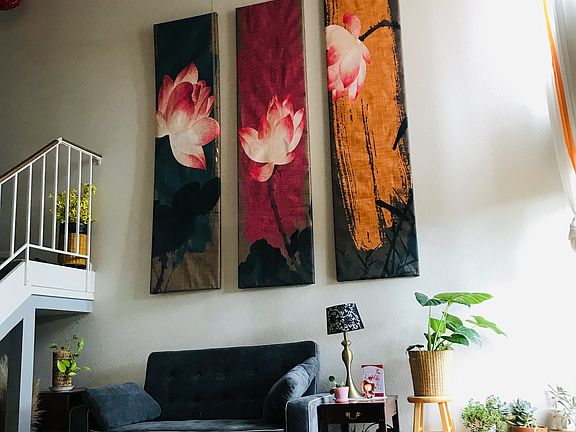 Enjoy a stylish, sunny and quiet experience at this centrally located one. Newly renovated. It is decorated according to Zen principles, high ceilings. Living room downstairs with framed stunning Asian wall coverings, natural lighting from huge glass windows and doors. Two spacious bedrooms upstairs, each one has its own shower/bathtub. Open floor plan, cozy dining room. Full kitchen, living room with fireplace, sunny patio with fruit tree, washer-dryer in garage. Safe gated community with a pool. Downstairs half bathroom near entry, patio and rear end balcony off second bedroom with walk-in closet. All the elements offer you a relaxing home.