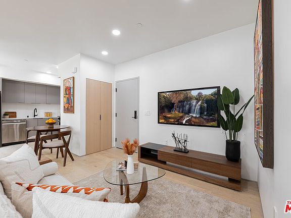 2025 Ultra-Modern Boutique Condominium in Prime Westwood. A brand-new 2025 architectural gem, this boutique building of only 15 residences is just minutes from UCLA and Westwood Village-perfect for students, faculty, or professionals seeking elegance, convenience, and walkability.This 4th-floor 1BR/1.5BA residence offers open-concept living with oversized black-framed windows, oak hardwood floors, custom built-ins, and refined luxury tile finishes. The designer kitchen showcases European cabinetry, quartz countertops, and premium Thermador appliances in select units, creating a stylish space for everyday living or entertaining. The bedroom includes an en-suite bath with a bathtub/shower combination.Residents enjoy secure parking, elevator, an elegant high-ceiling lobby, and exclusive top-floor penthouse units with private rooftops offering breathtaking city and mountain views. Set on a quiet, tree-lined street, the location offers effortless access to campus, cafes, fitness studios, shopping, and transit, with Beverly Hills, Century City, and Santa Monica just minutes away.Experience modern design, boutique exclusivity, and a Westwood lifestyle at its finest.